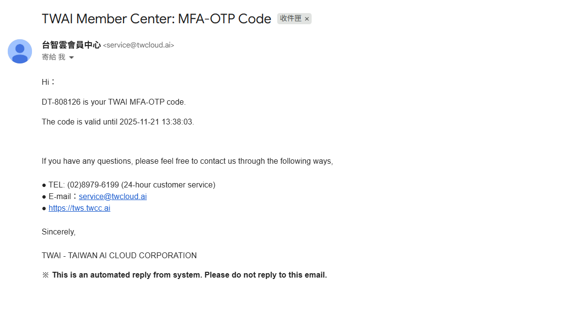 - The OTP for logging in to TWAI can be obtained directly on the login page.