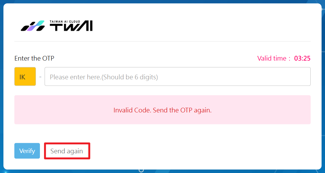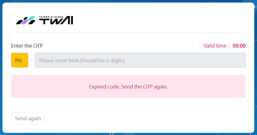 - If the OTP expires or is invalid, please click Send again to obtain a new OTP.